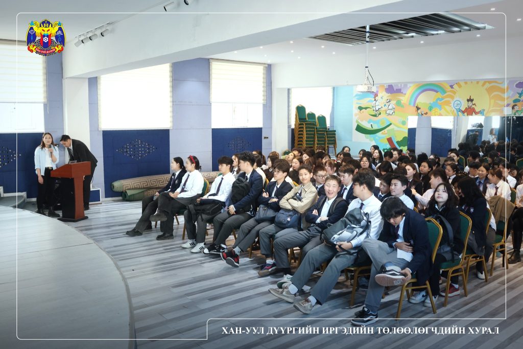 Ерөнхий боловсролын 18 дугаар сургуулийн ахлах ангийн 80 гаруй сурагчдад Хан-Уул дүүргийн иргэдийн Төлөөлөгчдийн Хурлын Гэмт хэргээс урьдчилан сэргийлэх ажлыг зохицуулах салбар зөвлөл, Цагдаагийн газар, Хүүхэд, гэр бүлийн хөгжил, хамгааллын хэлтэстэй хамтран цахим гэмт хэрэг, хорт зуршлуудын хор уршиг, үе тэнгийн дээрэлхэлт, гэмт хэргээс өөрийгөө болон бусдыг хэрхэн хамгаалах талаар зөвлөмж, мэдээллийг өгч, асуусан асуултад хариулан чөлөөт ярилцлага хийлээ.